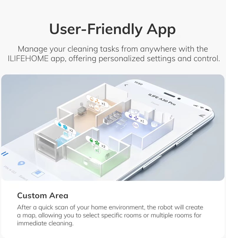 Most "budget" vacuums use gyroscopic navigation (they "guess" where they are based on wheel rotations). The A30 Pro uses LiDAR 3.0. The moment you fire it up, you can watch it build a millimeter-accurate map of your home in the ILIFE Clean app.
