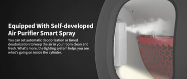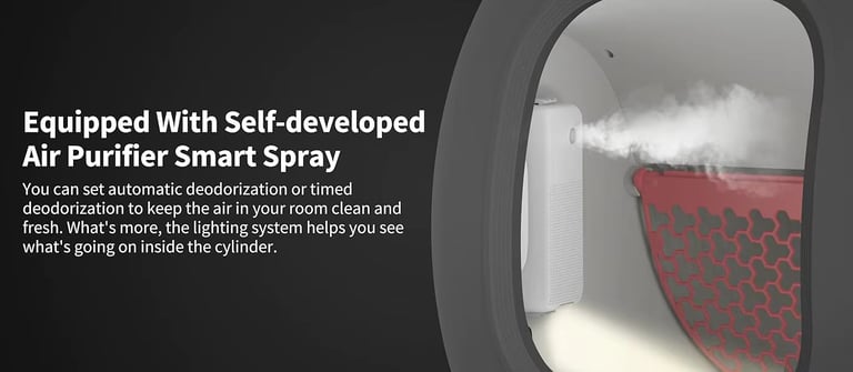 Odor is the final frontier of the litter box. The Pura Max approaches this with a dual-stage system. First, there is the mechanical separation: waste is deposited into a sealed drawer at the base. Second, the unit integrates the "Pura Air Smart Spray."