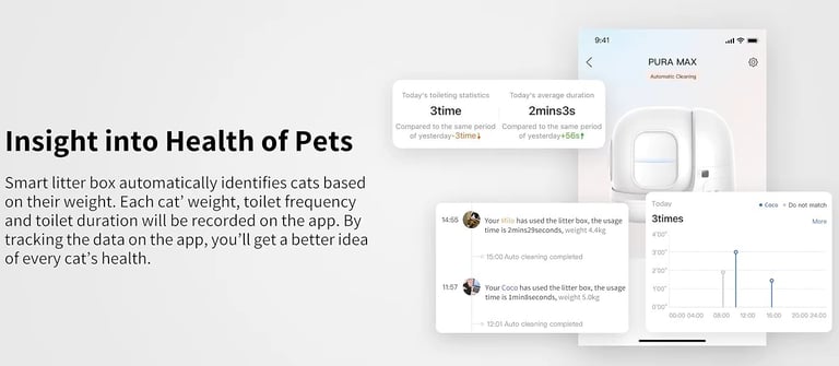 Weight Monitoring: It identifies which cat is using the box based on their weight profile.