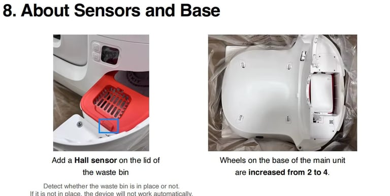 From a data-driven perspective, these sensors aren't just for safety—they are data points. The weight sensors calibrate the box every time it cleans, ensuring that the "Bin Full" notification is based on actual waste mass rather than a simple timer.