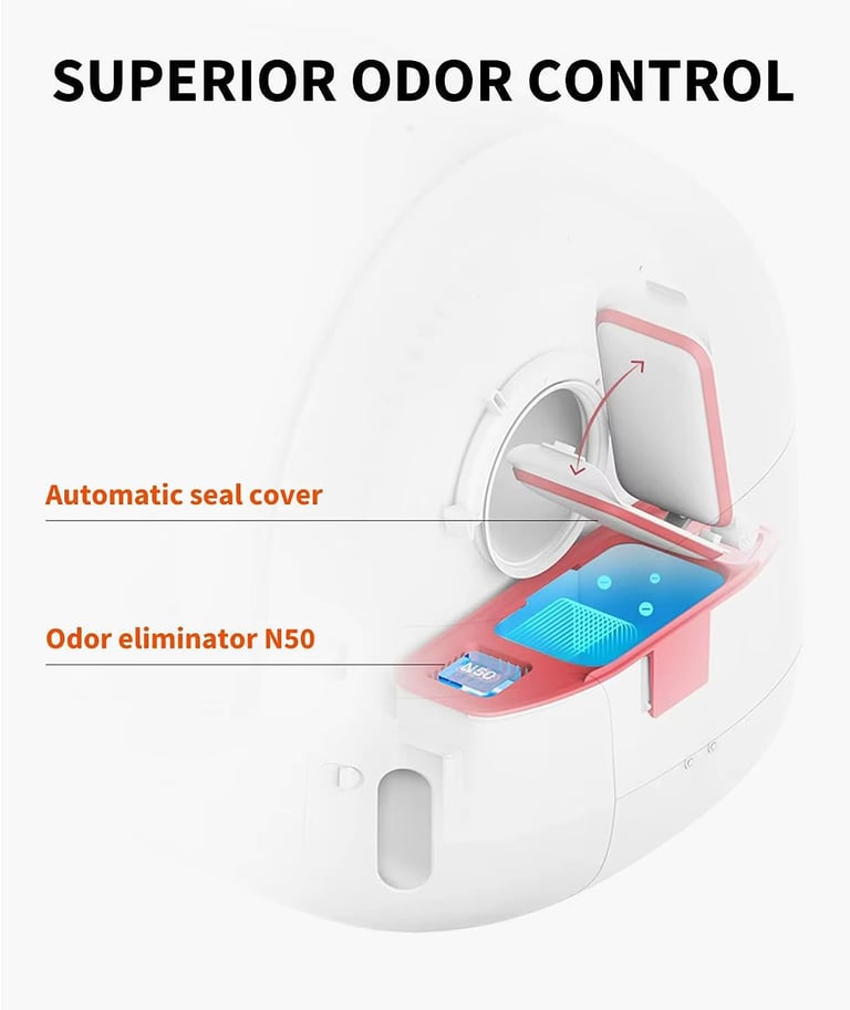 Odor Control: The sealed waste bin and integrated spray system are highly effective at neutralizing ammonia smells.